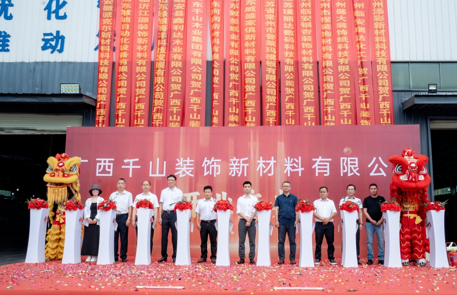 2024年5月25日,千山集團廣西生產基地——廣西千山裝飾新材料有限公司終于揭開神秘面紗,在廣西融安縣浮石工業園區正式落地,開業典禮于公司園區盛大舉行!作為專業的三聚氰胺浸漬紙和配套膠水供應商,廣西千山裝飾新材料有限公司占地面積15000平方米,計劃建設浸漬貼面紙生產線10條,年產浸漬貼面紙3000萬張,同時配