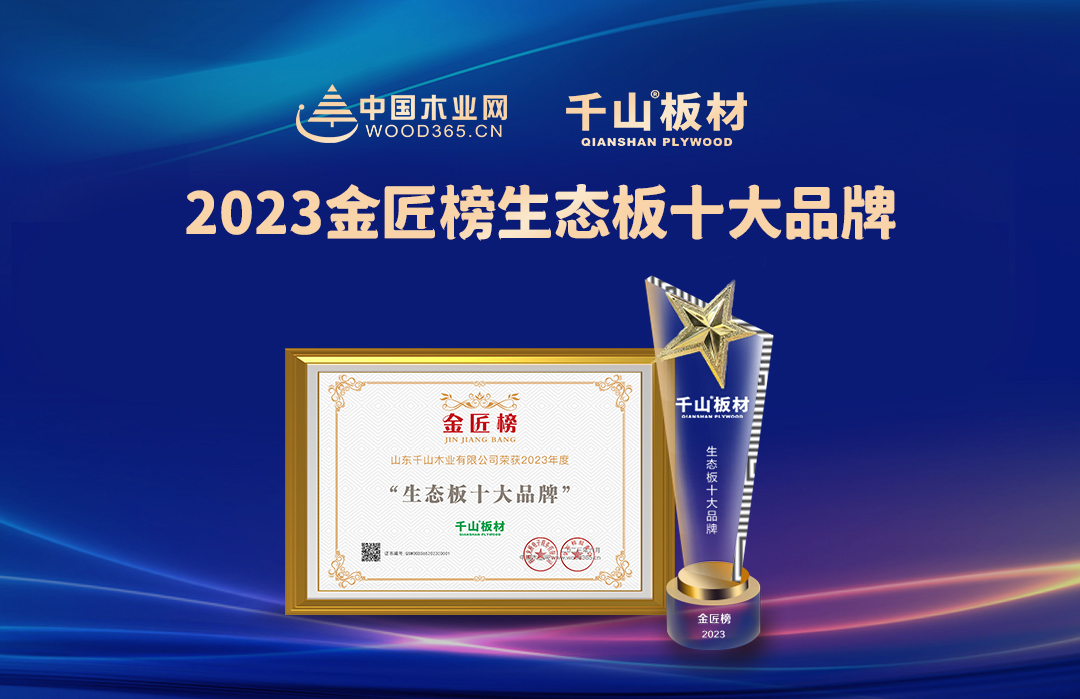 2023年7月1日,由中國木業網舉辦的2023中國板材產業峰會暨金匠榜頒獎典禮在杭州隆重舉行,行業專家、優秀獲獎企業齊聚盛宴,共同見證了生態板十大品牌、行業影響力十大品牌等各品類十大品牌的榮耀加冕。在此次評選中,千山板材實力登榜,憑借優異的產品品質、強大的品牌實力、良好的服務口碑,再次斬獲金匠榜2023年度“生